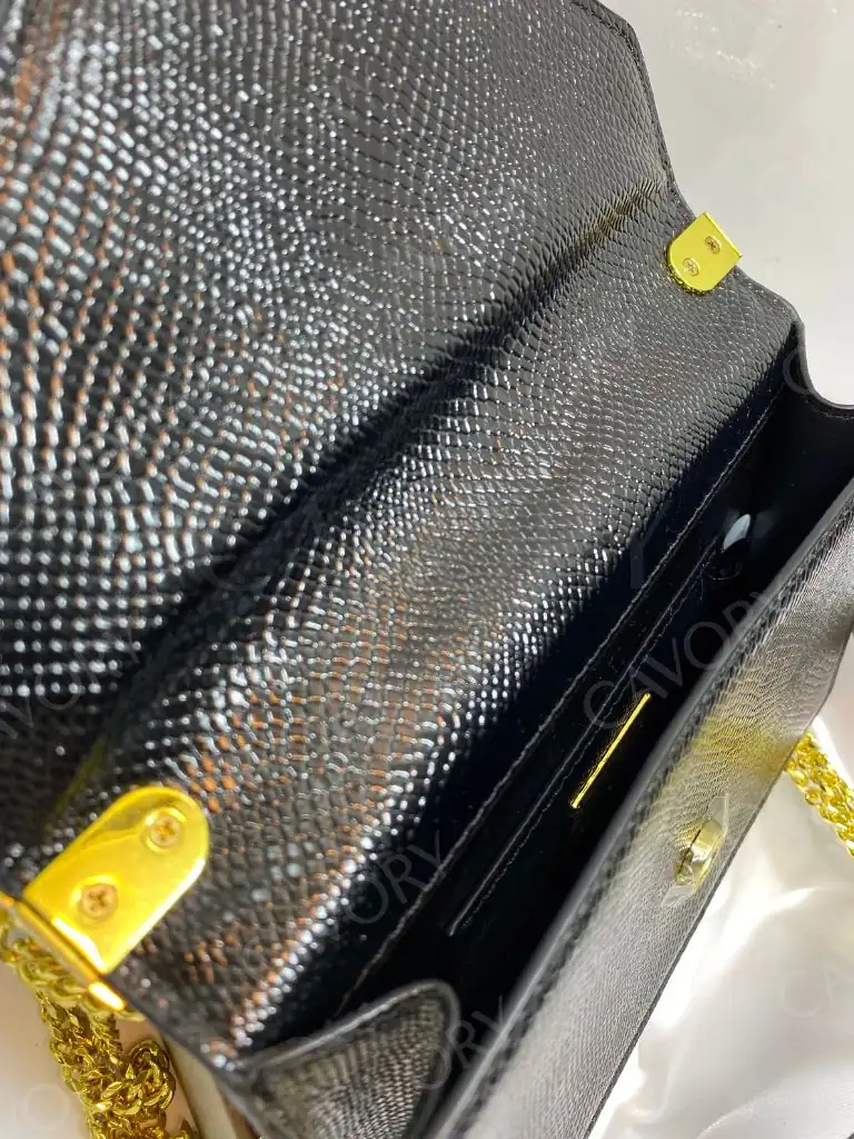 Its envelope silhouette offers a sleek and elegant design, while the compact yet practical interior is perfect for carrying your essentials. The adjustable chain-and-leather strap allows versatile styling—wear it crossbody, over the shoulder, or as a clutch for evening events.