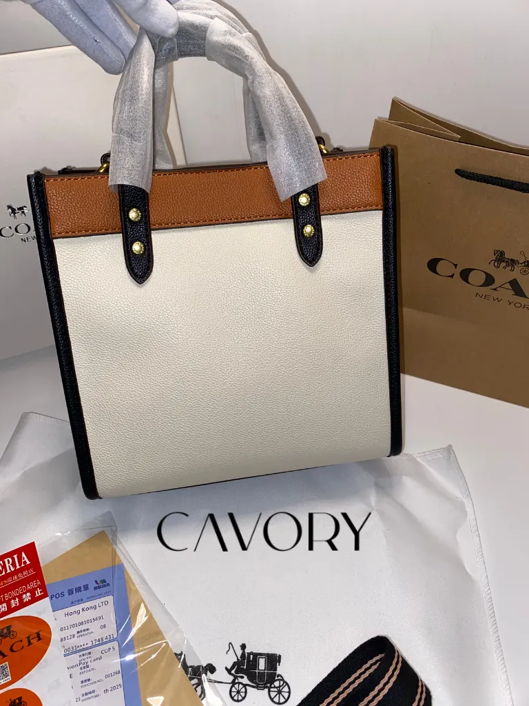 Coach Field Tote 22 – White & Brown Colorblock Leather