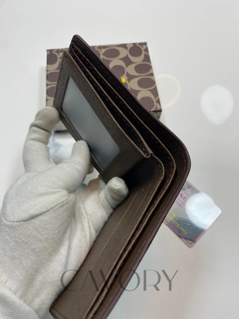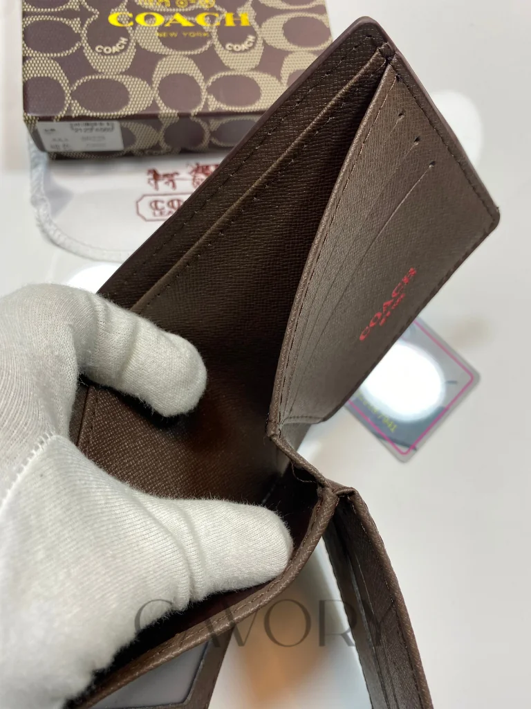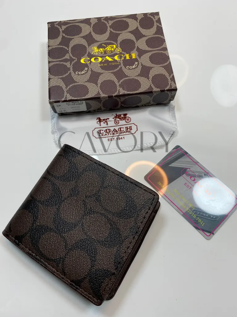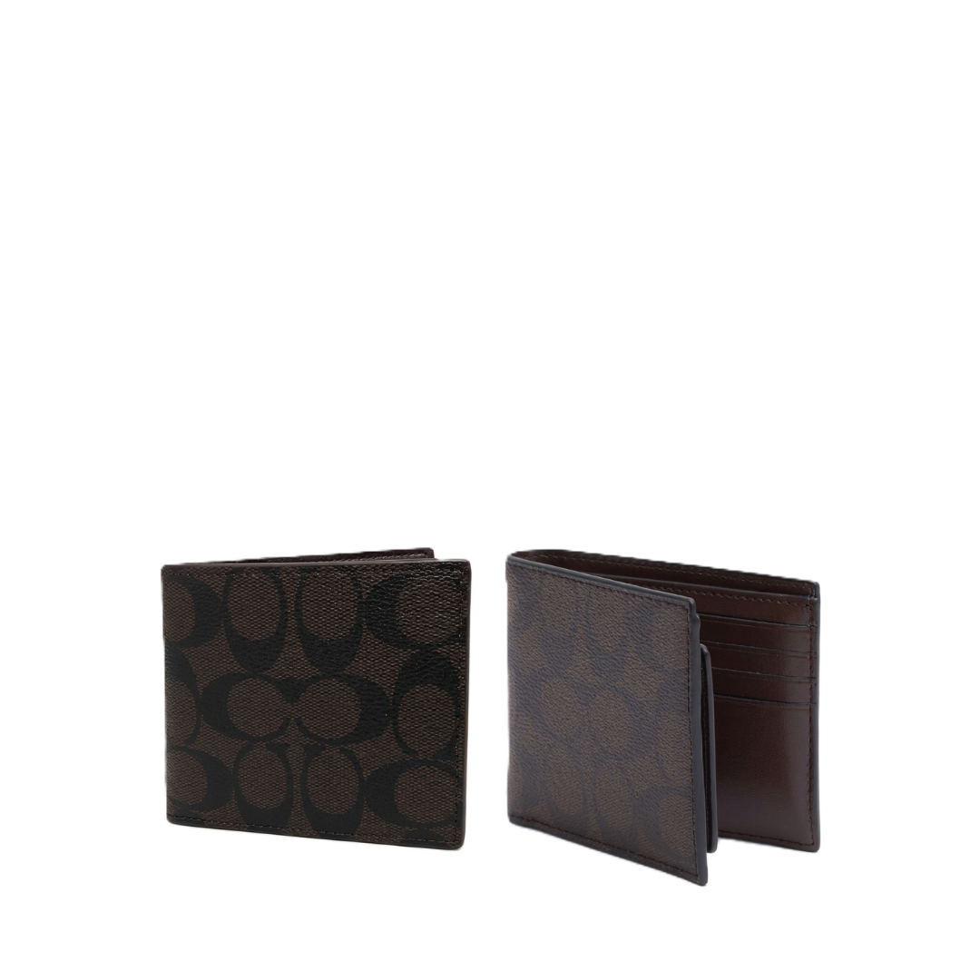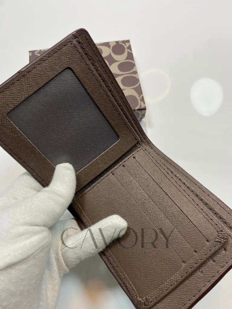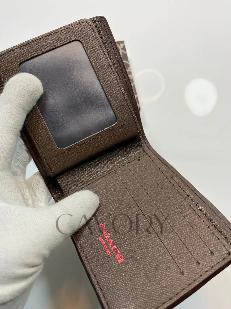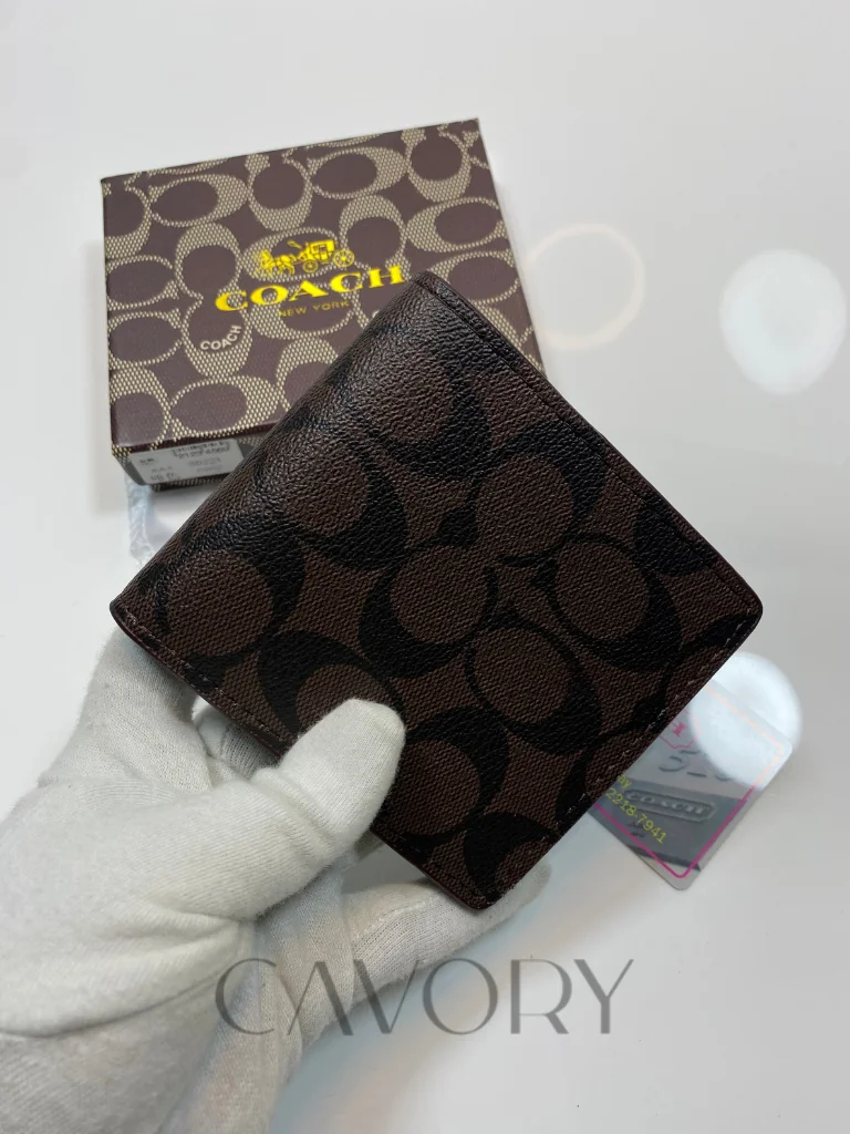 Upgrade your daily carry with the classic elegance of this Coach Signature Bifold Wallet. Crafted from durable Signature coated canvas with premium leather trim, this wallet features the iconic “C” pattern in a versatile mahogany and black colorway. It is the perfect blend of style and utility, making it a standout choice among premium women bags and accessories.