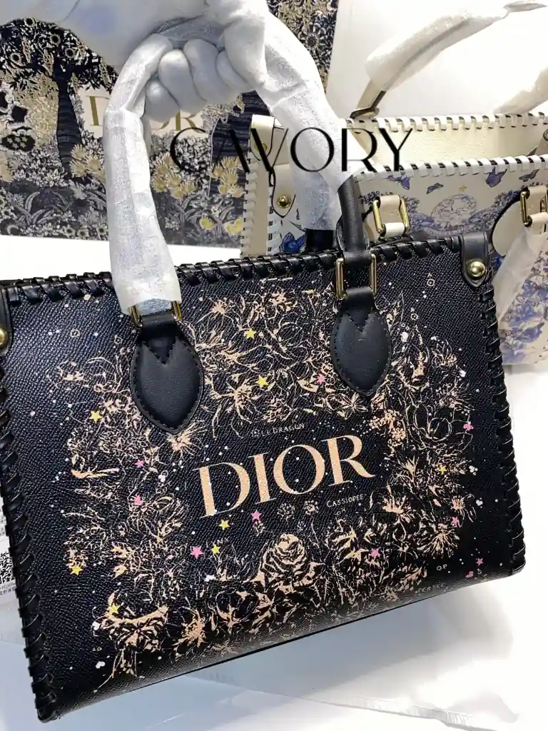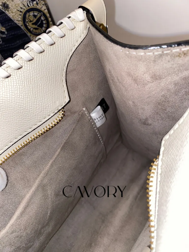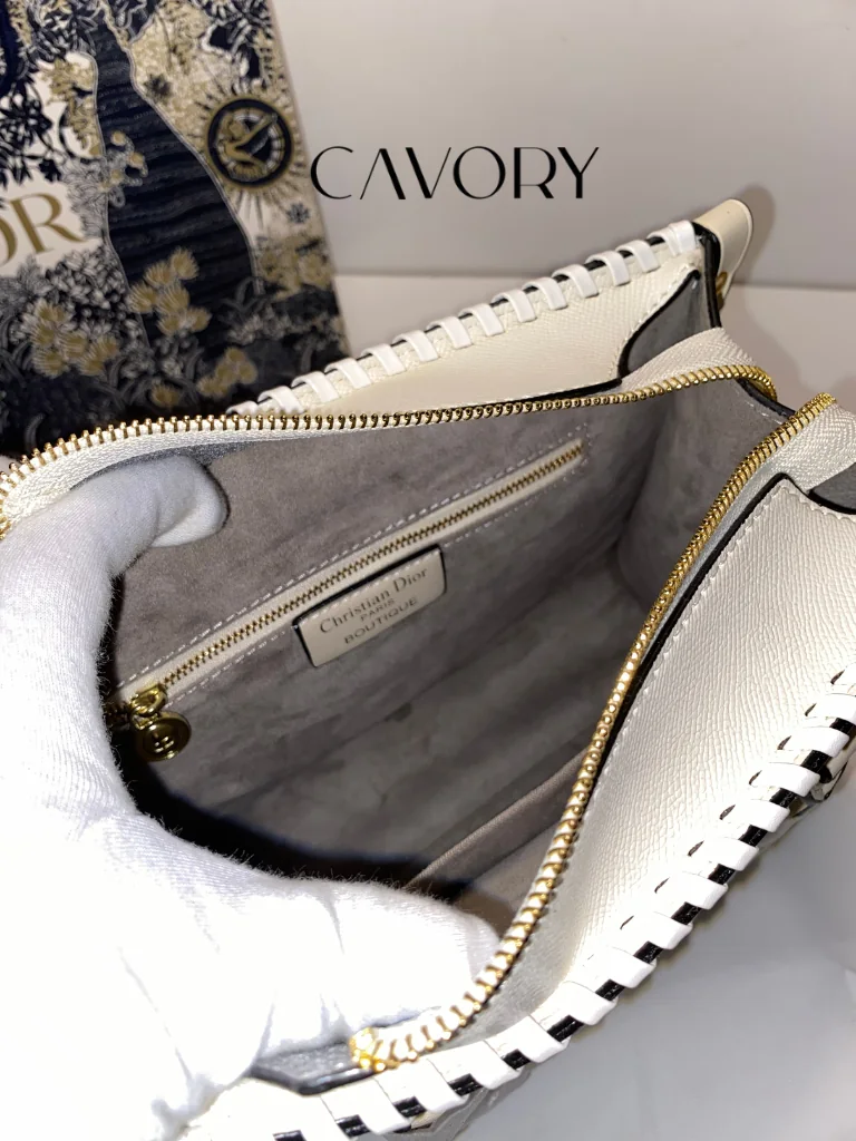 Hardware: Elegant gold-tone “DIOR” lettering on the front panel.
