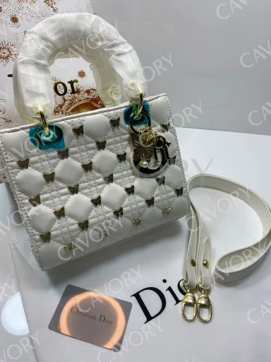 Introducing this premium Dior White Quilted Butterfly Handbag, a symbol of luxury and elegance. This structured handbag features: