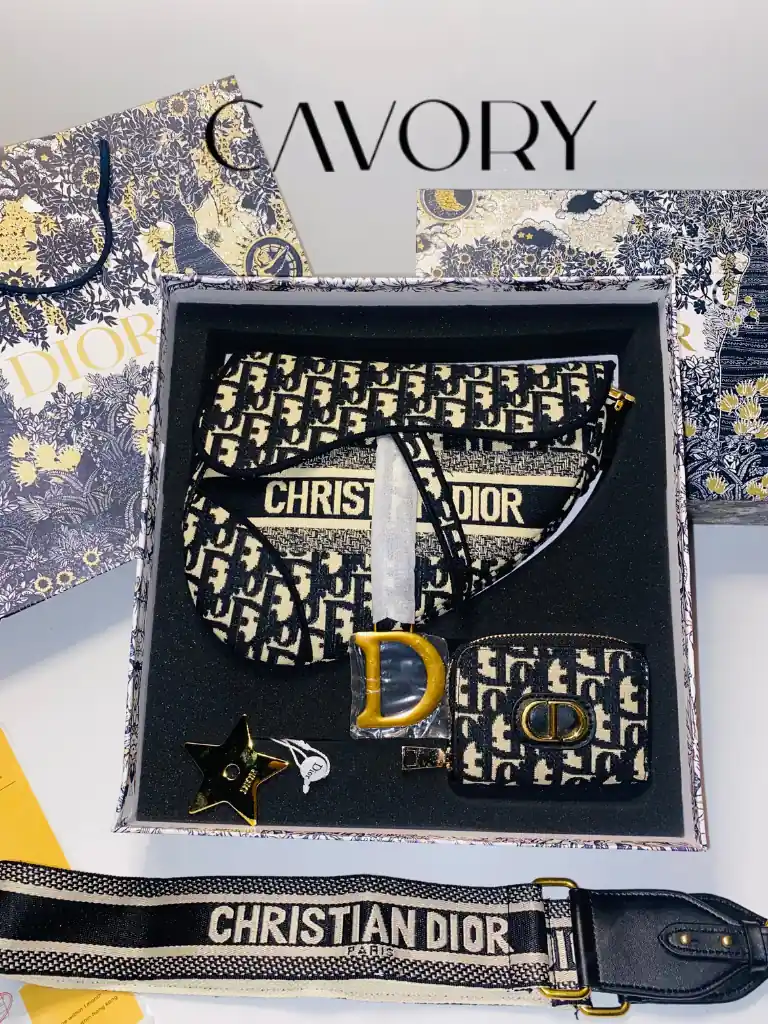 Indulge in timeless luxury with the exquisite Dior Oblique Canvas Saddle Bag Gift Set. This is the ultimate addition to your luxury women bags collection, featuring the iconic saddle silhouette in the black and white Dior Oblique canvas. The set includes a removable wide “Christian Dior” logo fabric strap for versatile wear and a matching zipped pouch/cardholder. Presented beautifully, this set is perfect for gifting or elevating your own style.