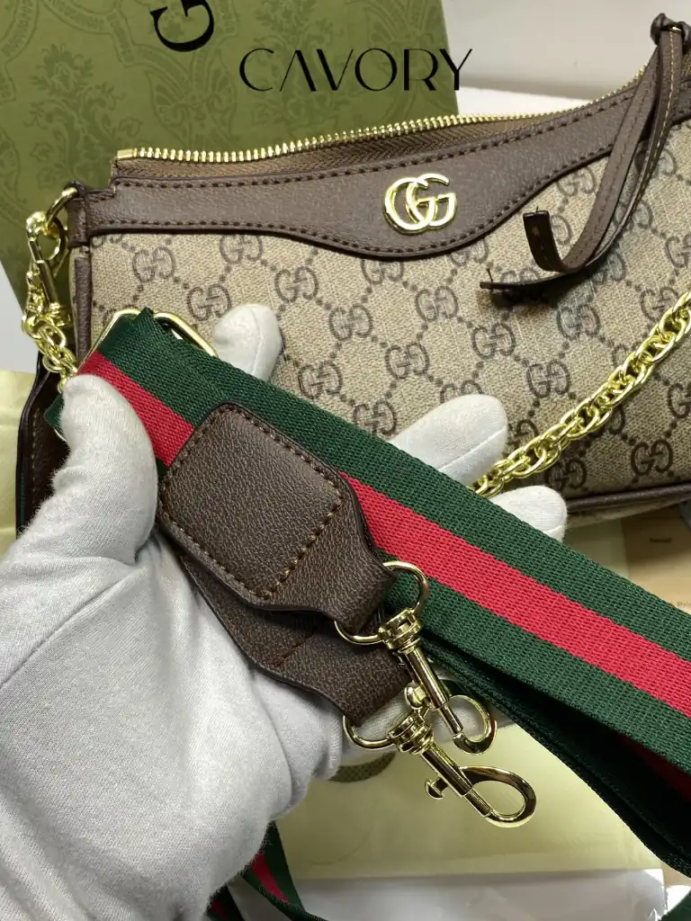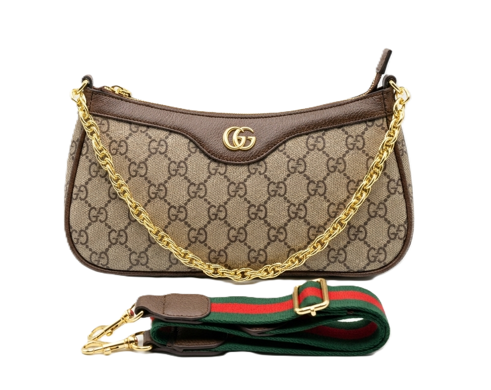 A masterpiece of heritage and contemporary design, the Gucci Ophidia Small Shoulder Bag is a must-have for any collection of luxury women bags. This bag is crafted from the signature GG Supreme canvas, accented with rich brown leather trim and the iconic Double G hardware in a gold-tone finish.