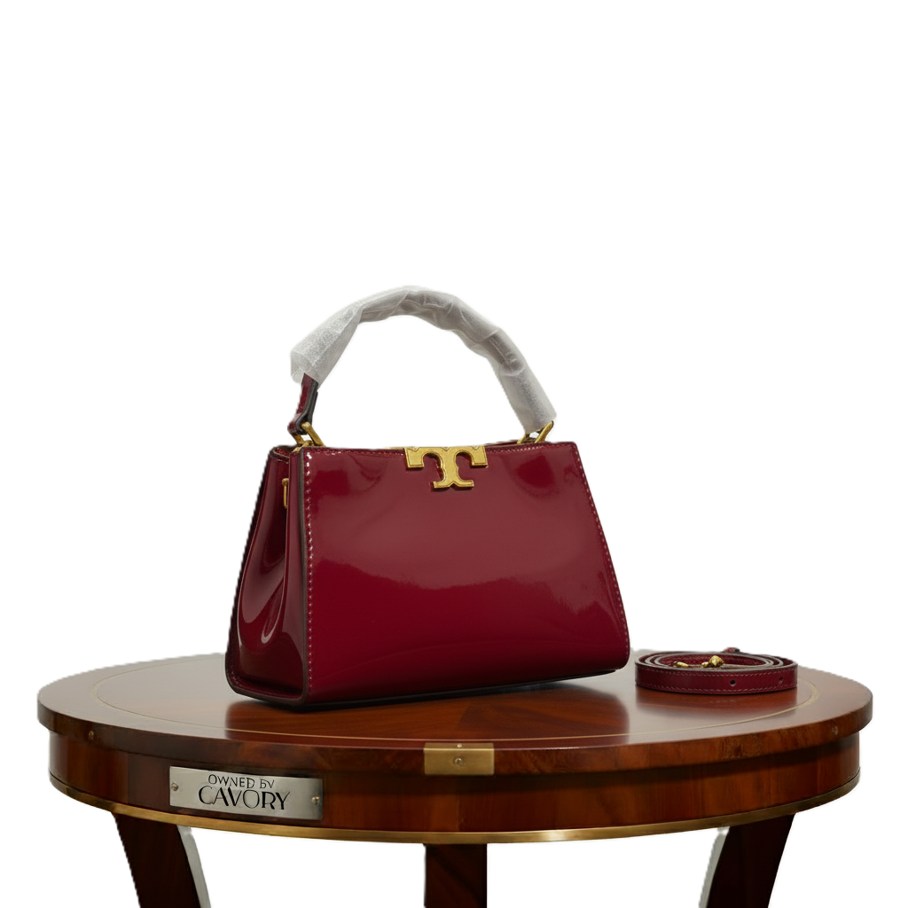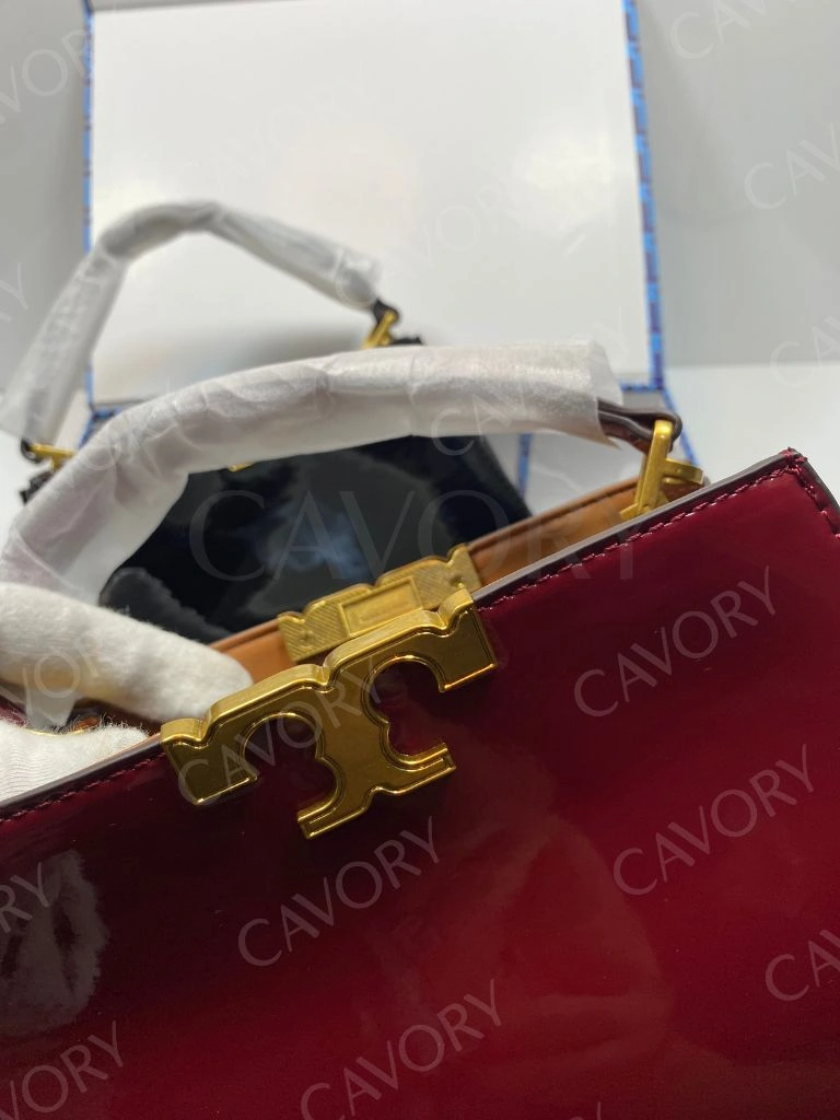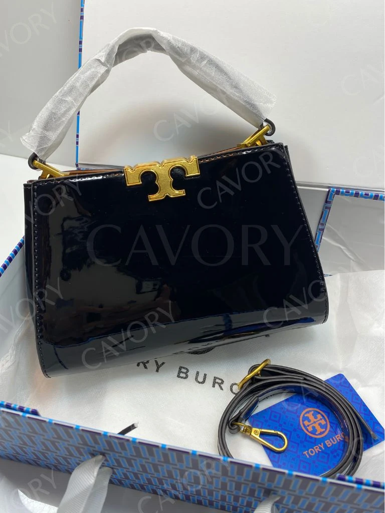 Model: Tory Burch Patent Leather Shoulder Bag – Black with Gold Logo