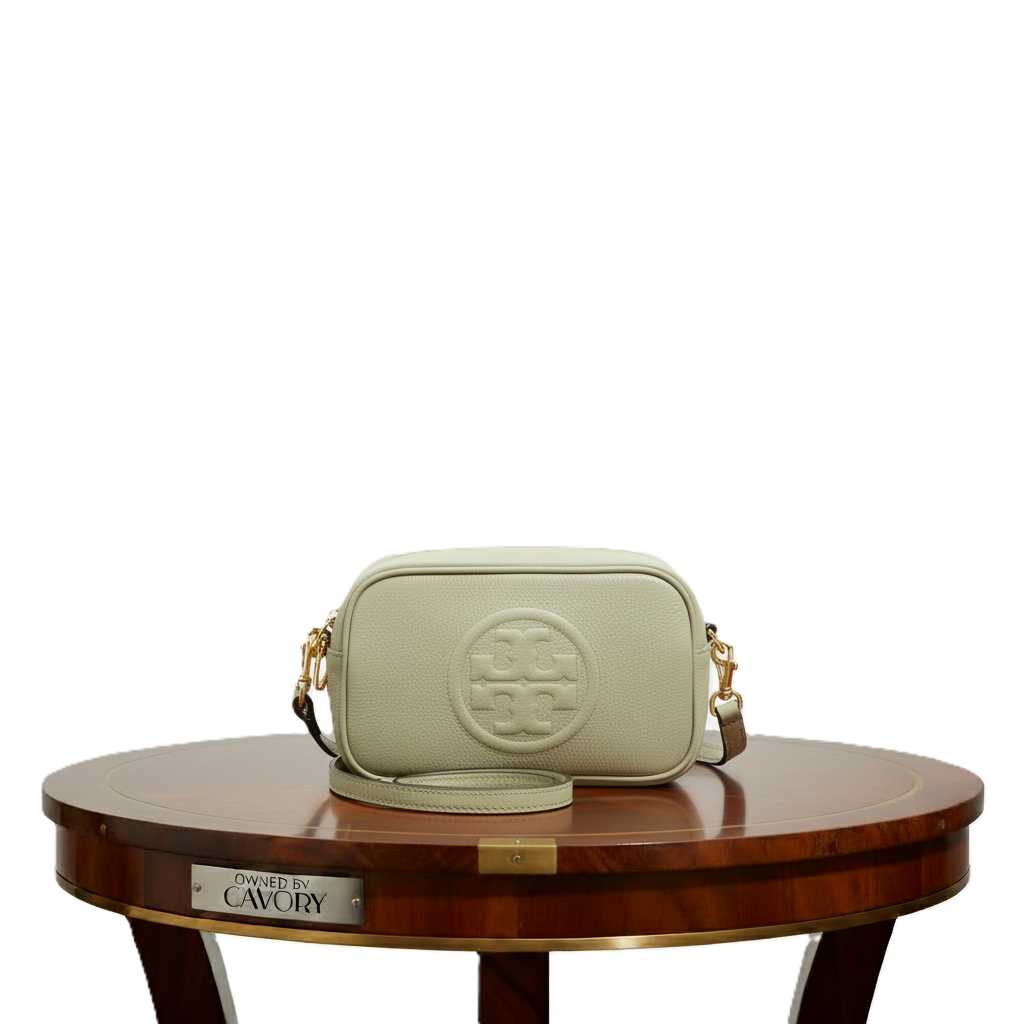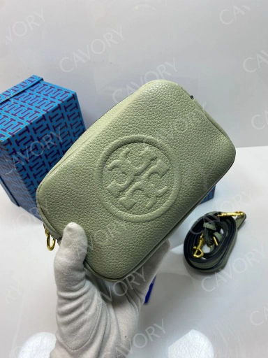 Its compact structure features the iconic double T embossed logo, highlighting the classic yet contemporary style of the Tory Burch brand. The adjustable crossbody strap ensures hands-free convenience while on the go, making it ideal for shopping, city outings, or casual events.