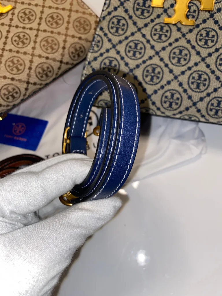 Hardware: Iconic gold-tone double-T logo push-lock.
