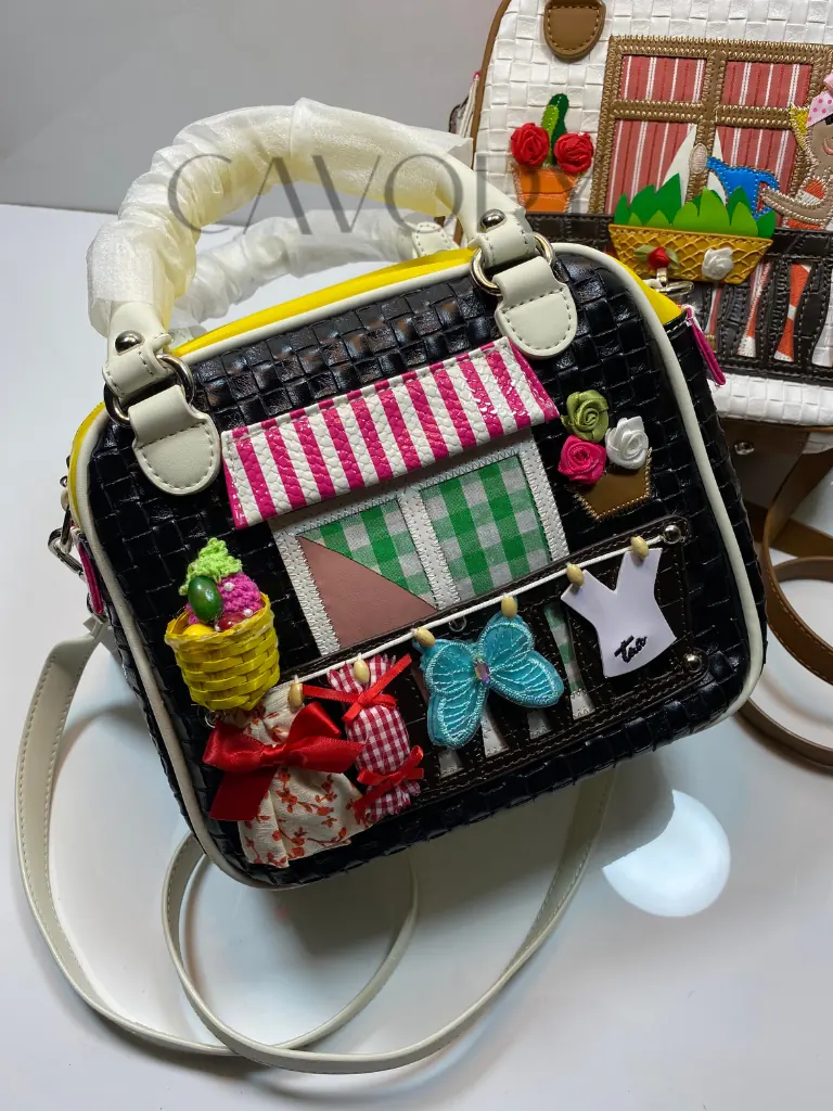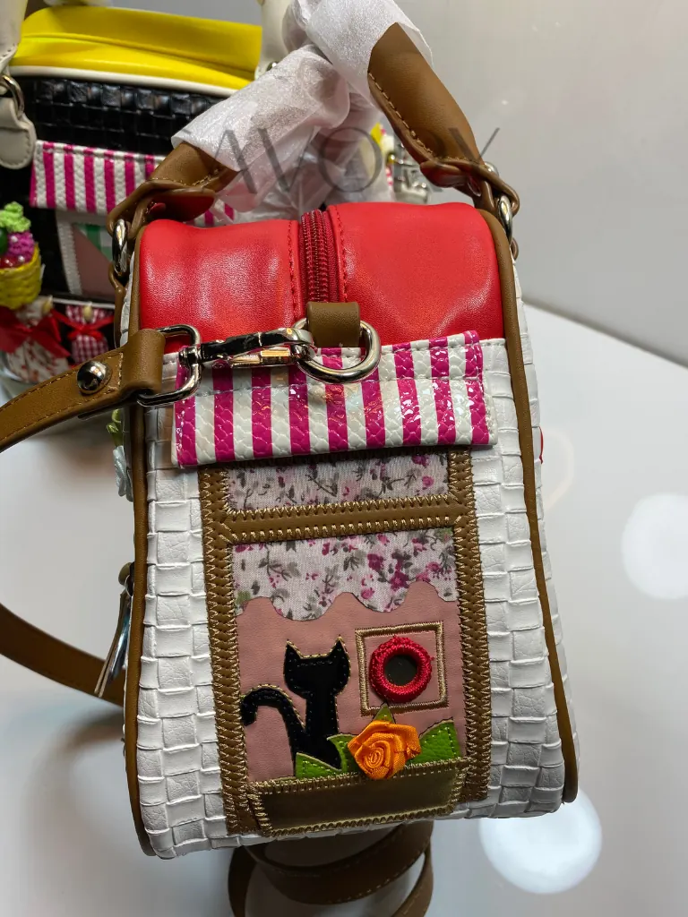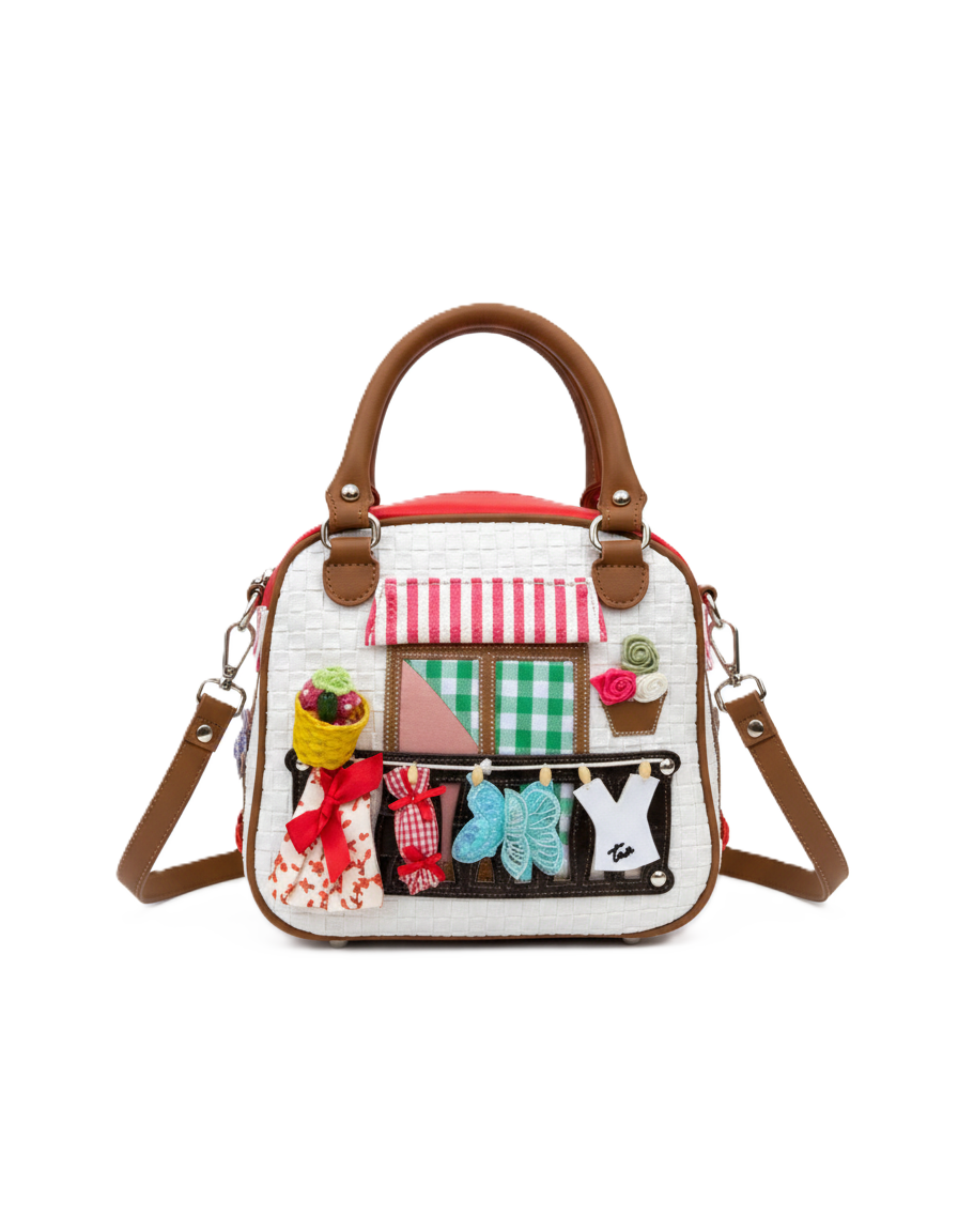 Step out with a conversation starter! This creative women bag features a charming 3D house design, complete with colorful floral appliqués, a miniature balcony, and a “Home Sweet Home” message. Crafted from high-quality vegan leather, this white crossbody bag combines artistic flair with daily functionality. It is perfect for those who love unique, boutique-style accessories that stand out from the crowd.